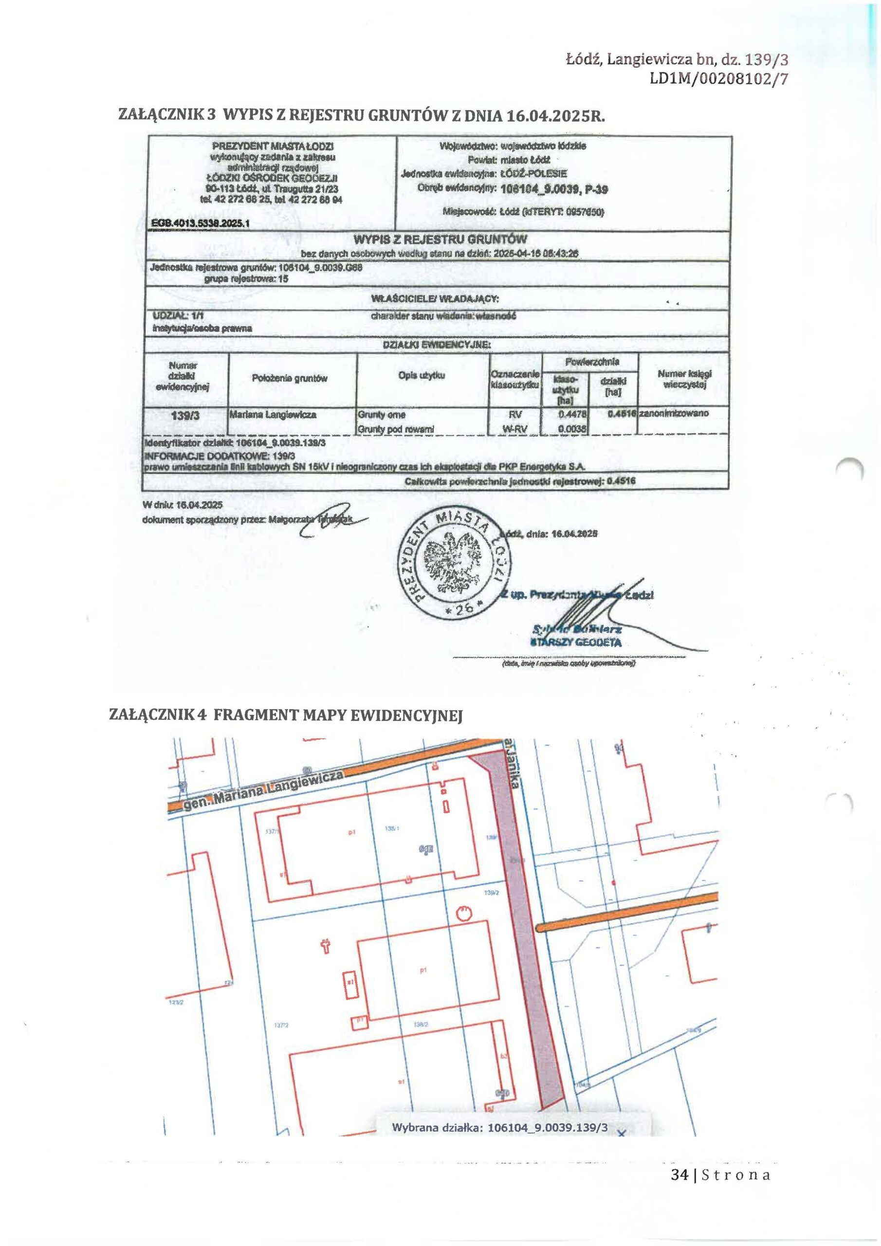 Ogłasza przetarg na sprzedaż niezabudowanej nieruchomości gruntowej położonej w Łodzi przy ul. Langiewicza bn., obręb P-39, oznaczonej jako działka o numerze 139/3 o powierzchni 0,4516 ha, dla której Sąd Rejonowy dla Łodzi-Śródmieścia w Łodzi, XVI Wydział Ksiąg Wieczystych, prowadzi księgę wieczystą o numerze LD1M/00208102/7.
