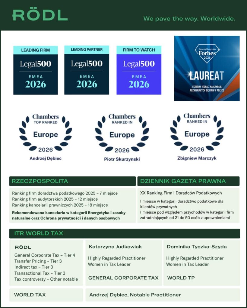 We are one of Germany’s leading professional services firms supporting international companies on their growth path. We have been operating in Poland since 1992 in six locations: Gdańsk, Gliwice, Poznań, Cracow, Warsaw, Wrocław. We have gained rich experience advising numerous Polish and foreign companies over this time. We provide services in the fields of audit, law, taxes, financial and payroll accounting and consulting.
